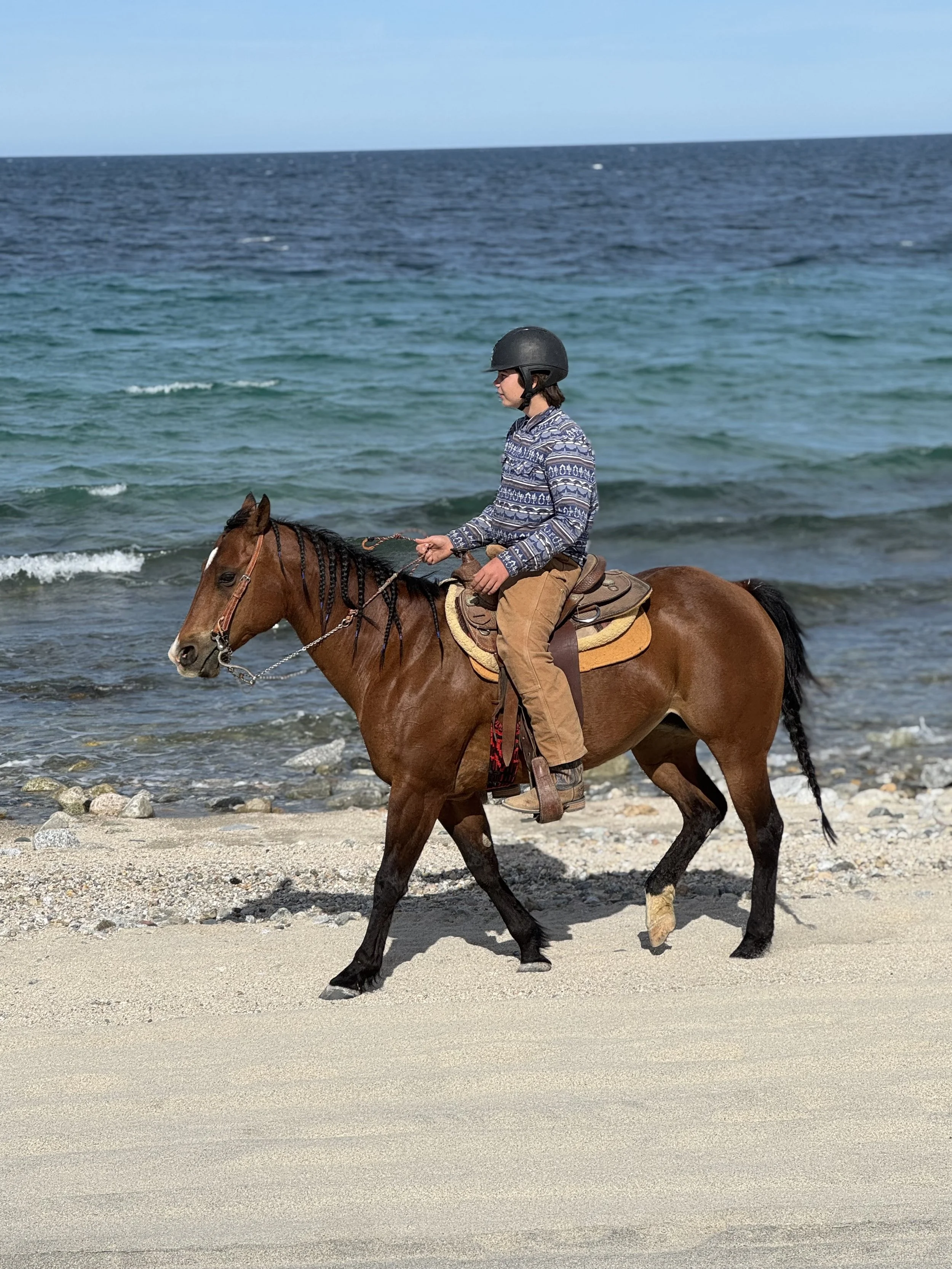 We’ll meet at Rancho La Pila (Google Maps link) where your horse will be tacked up and ready to go. From La Pila we’ll ride through the arroyo until we make it to the beach. We’ll ride along the beach until it’s time to return to La Pila. Hang out at La Pila and say hi to some of our cute farm animals.